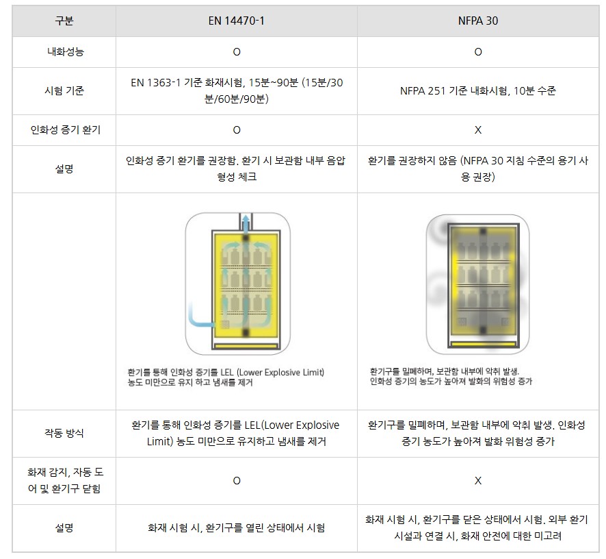 국제 인증 기준 비교 (EN 14470-1 vs NFPA 30)