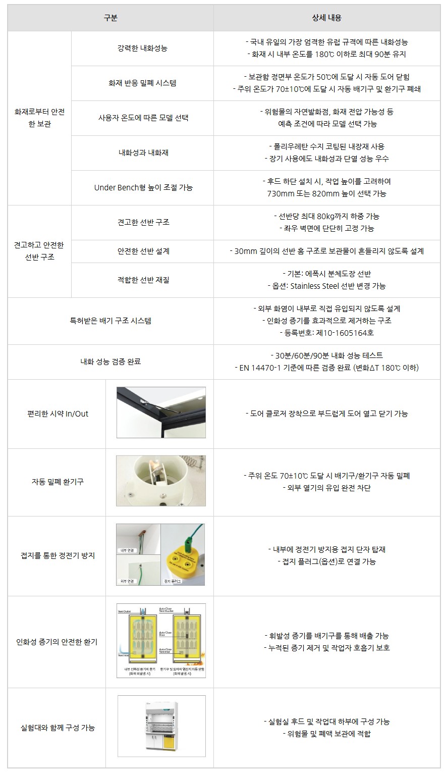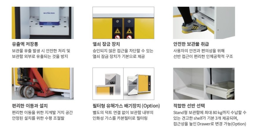 화학물질, 인화성 위험물 등 실험실 내 보관 위험요소로부터 사용자의 생명과 시설을 보호합니다.
