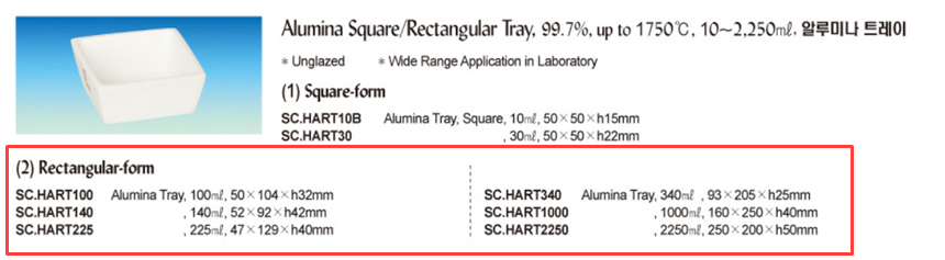 직사각형 알루미나 트레이 100㎖ - 1000㎖