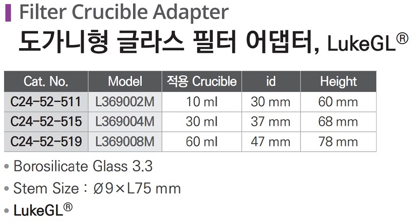 도가니형 글라스 필터 어댑터, LukeGL®