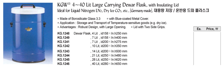 품명 대용량 저장 / 운반용 드와 플라스크 4Lit - 28 Lit