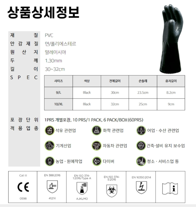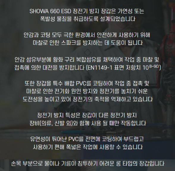 쇼와 660ESD PVC 코팅 정전기방지 안전 장갑 내유 내화학 방수 다이버 SHOWA / 1켤레