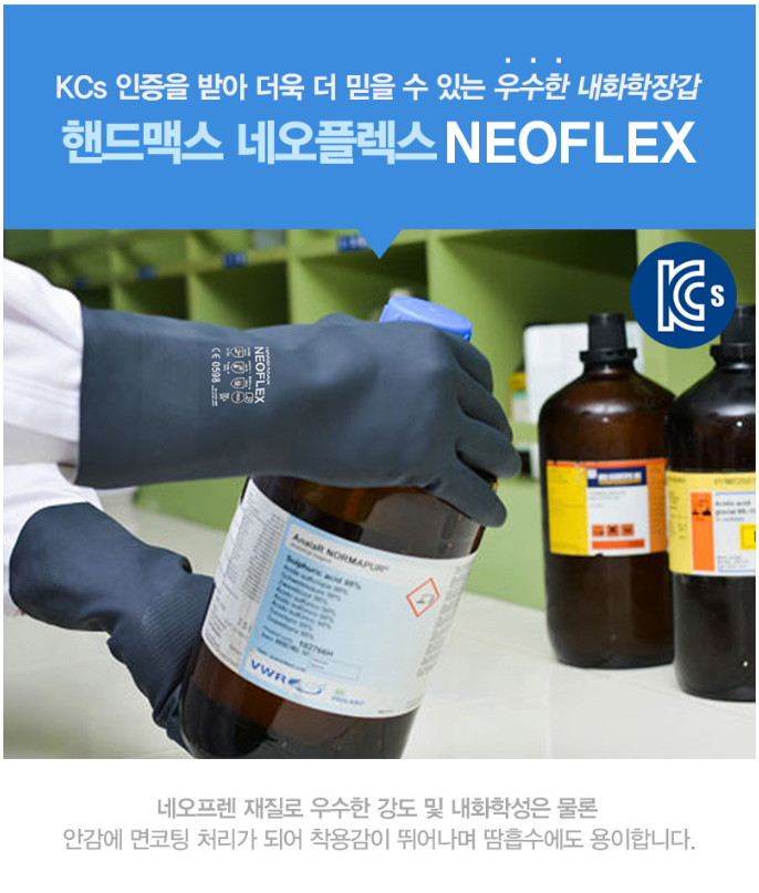 KSc 인증을 받아 더욱 더 믿을 수 있는 우수한 내화학장갑
