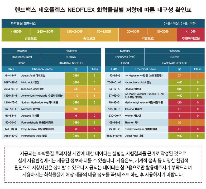 네오프렌 재질로 다양한 화학물질에 대한 높은 저항성