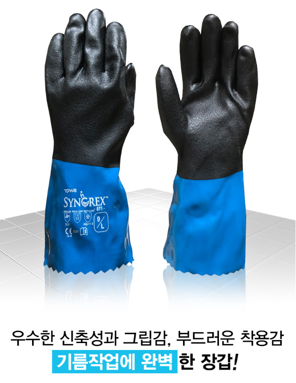 품명 ■ 우수한 신축성과 그립감, 부드러운 착용감 기름작업에 완벽한 장갑