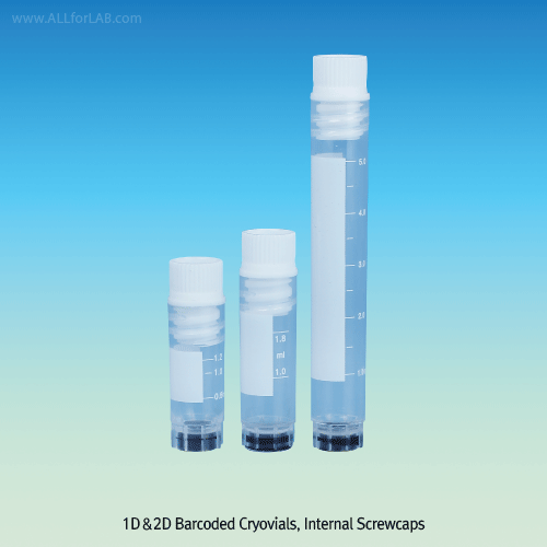 CryoTain TM 1.2~5㎖ 1D & 2D Wall & Bottom Barcoded PP Sterile Cryovial, External/Internal Thread, Self-standingFree of DNase · RNase · Endotoxin-free , Irradiation Sterilization, -196~+121℃, 1D & 2D 월 - 바텀 바코드 멸균 냉동 바이알
