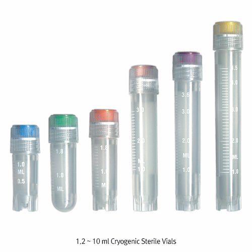 Cryovial TM PP 1.2 ~ 10 ㎖ Cryogenic Sterile Vial, with Graduation, -196℃ +121℃With Silicone-washer Seal & External Screwcap, CryoVial® T310CryoVial® 눈금부 멸균 냉동 Vials, 외부 Screw 캡 & 실리콘 와셔링 실