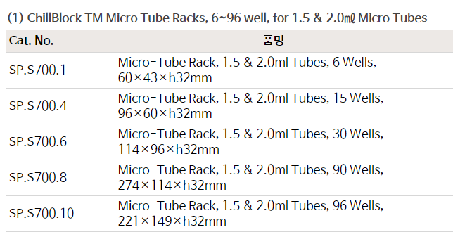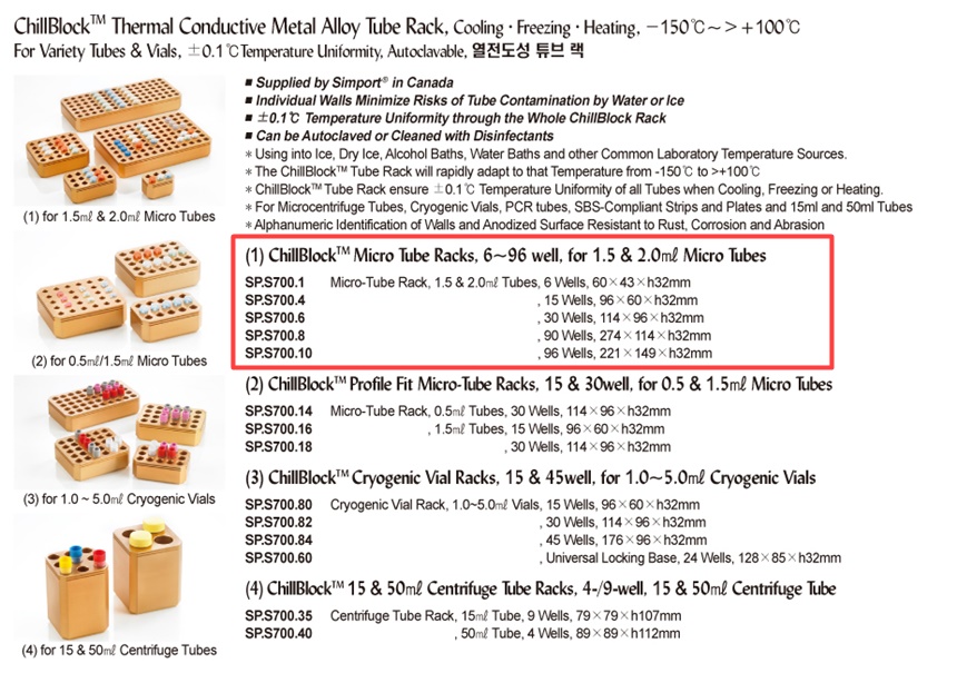 품명 ■ 열전도성 튜브 랙 ChillBlock TM Thermal Conductive Metal Alloy Tube Rack