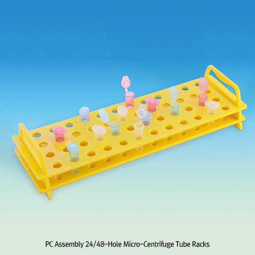PC Assembly 24 & 48-hole Micro-Centrifuge Tube Rack, with Handle, for 1.5/2㎖ TubesWith Alpha-Numeric Index, Yellow Color, Stackable, 24/48 홀 PC 마이크로 튜브 랙