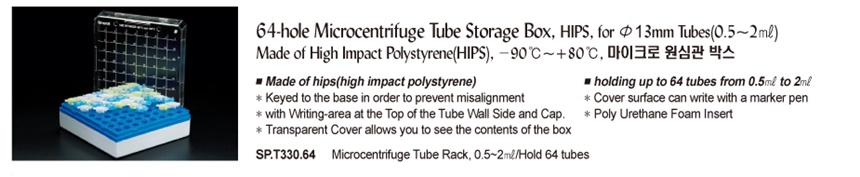 64-hole Microcentrifuge Tube Storage Box, HIPS, for Φ13mm Tubes(0.5~2㎖)Made of High Impact Polystyrene(HIPS), -90 ℃ ~+80 ℃ , 마이크로 원심관 박스