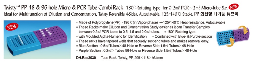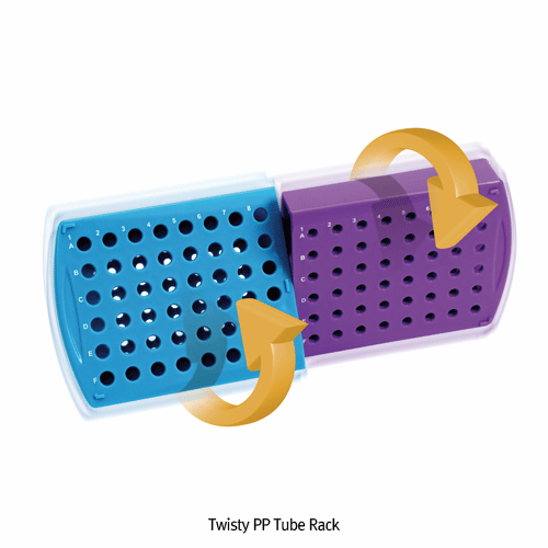 wisty TM PP 48 & 96-hole Micro & PCR Tube Combi-Rack, 180 °-Rotating type, for 0.2㎖ PCR~2㎖ Micro-Tube &c.Ideal for Multifunction of Dilution and Concentration, Twisty Reversible 4-Sides, Autoclavable, 125/140℃ Stable, PP 회전형 다기능 튜브랙