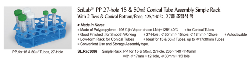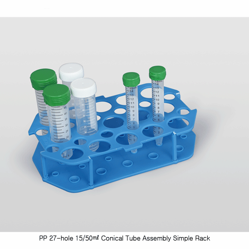SciLab® PP 27-hole 15 & 50㎖ Conical Tube Assembly Simple RackWith 2 Tiers & Conical Bottom/Base, 125/140℃, 27홀 조립식 랙