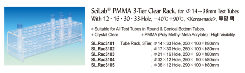 SciLab® PMMA 3-Tier Clear Rack, for Φ14~38mm Test TubesWith 12·16·30·33-Hole, -40℃+90℃, , 투명 랙