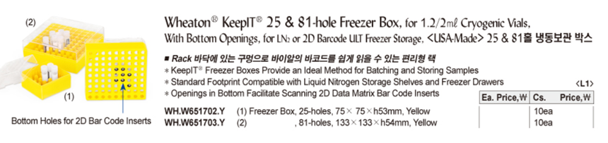 Wheaton KeepIT 25 & 81-hole Freezer Box, for 1.2/2㎖ Cryogenic Vials,