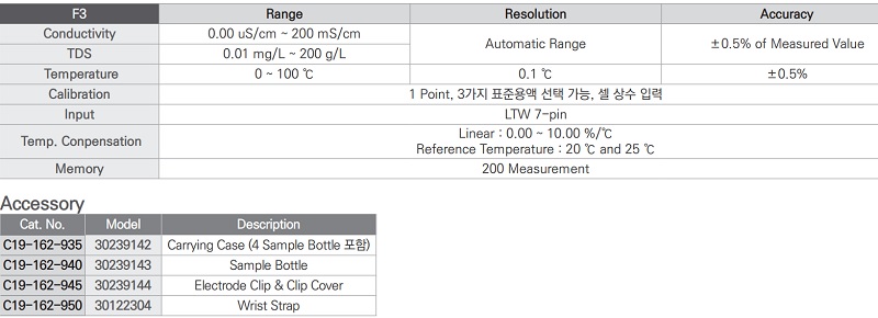 ■ 전도도 : 0.00 ~ 200 uS/cm, TDS : 0.01 mg/L ~ 200 g/L