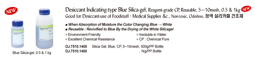 Desiccant Indicating-type Blue Silica-gel, Reagent-grade CP, Reusable, 5~10mesh, 0.5 & 1kgGood for Desiccant-use of Foodstuff·Medical Supplies &c., Non-toxic, Odorless, 청색 실리카겔 건조제