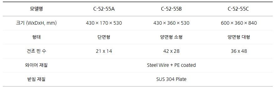 품명 실험실용 유리기구 건조대 C-52 시리즈! 단면·양면 선택 가능, SUS304 받침 포함으로 위생적이고 효율적인 실험환경 제공