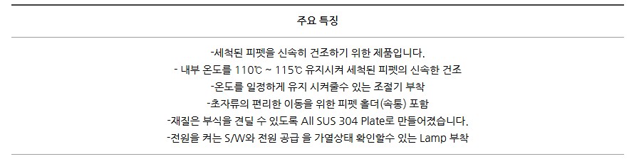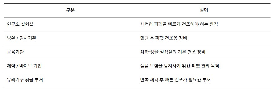 품명 피펫 전용 건조기 C-PD, 110~115℃ 유지. SUS304 재질, 피펫홀더 포함, 온도 조절 가능. 실험실용 필수 장비.