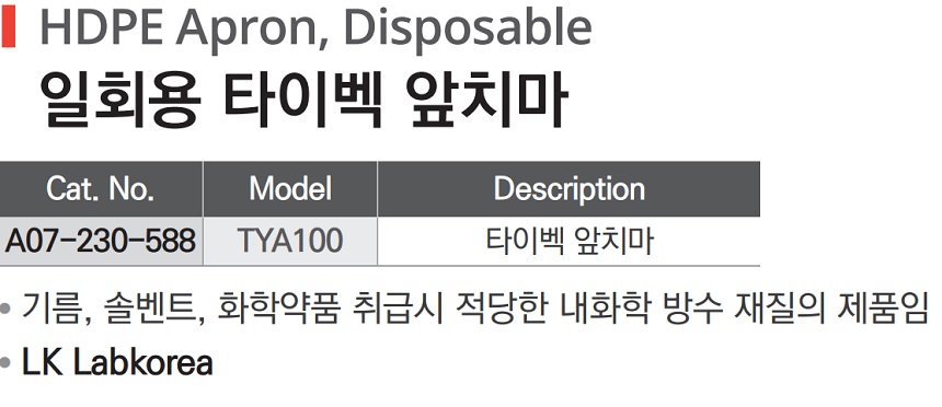 일회용 타이벡 앞치마 HDPE Apron, Disposable, A07-230-588