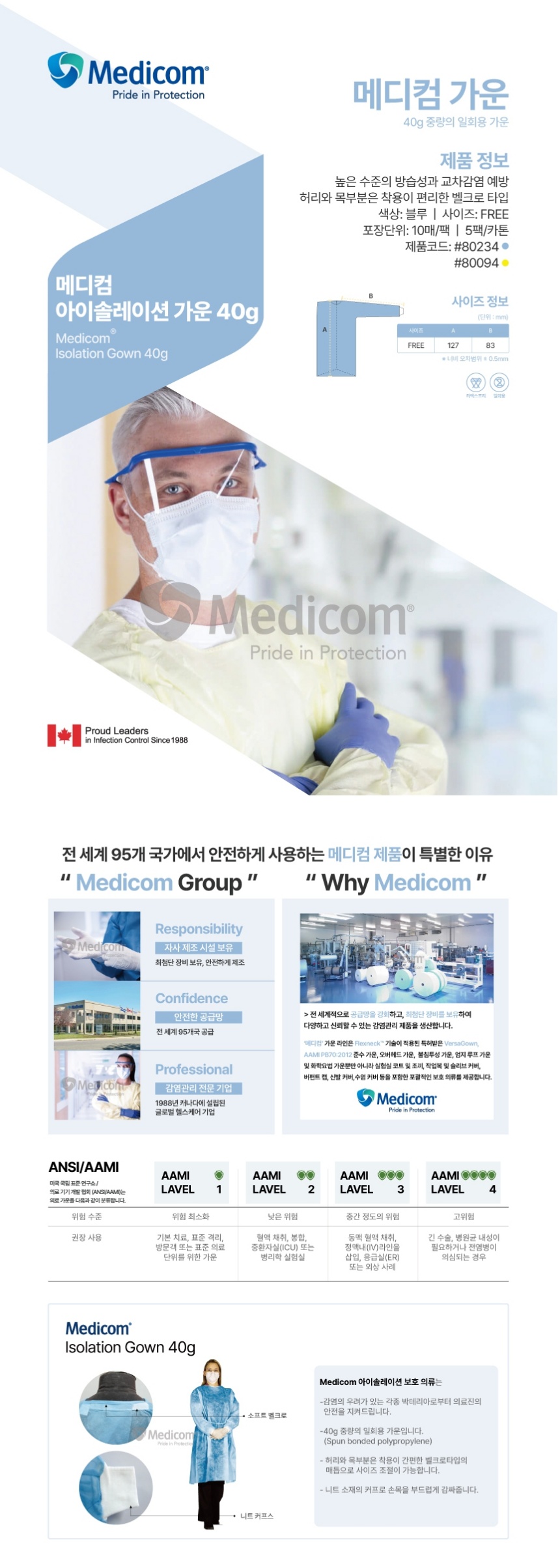 품명 높은 수준의 방습성과 교차감염 예방 허리와 목부분은 착용이 편리한 벨크로 타입