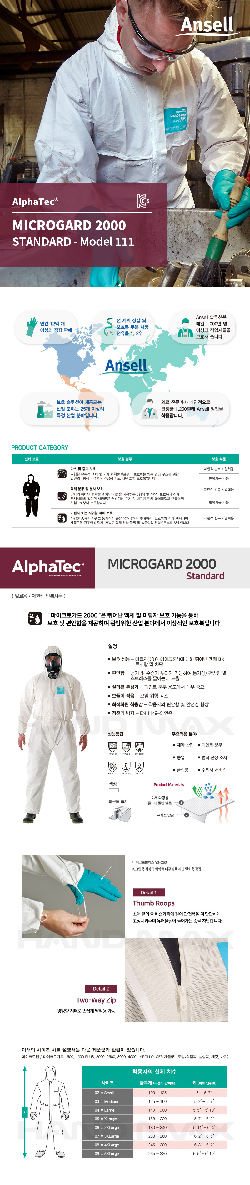 • [ANSELL] 알파텍 마이크로 가드 MG2000 (화학복, 5형식, 6형식, KCs인증) 1박스(40벌)