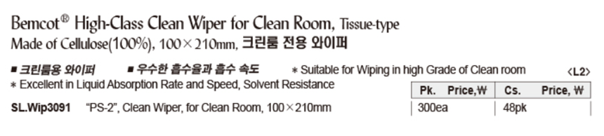 Made of Cellulose(100%), 100×210mm, 크린룸 전용 와이퍼