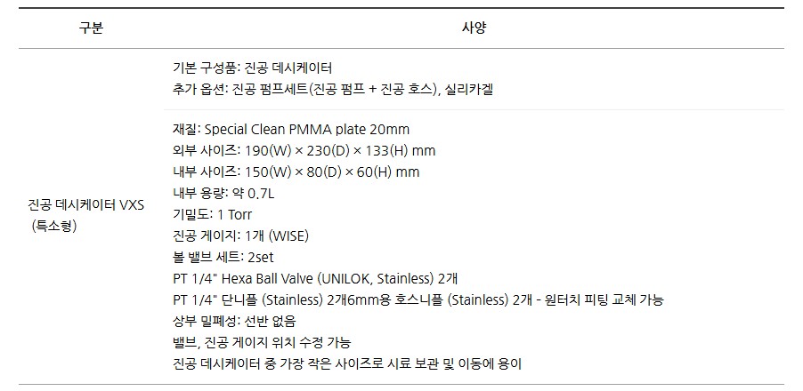 진공 데시케이터 VXS(특소형)은 시료 보관 및 이동에 용이한 초소형 진공 장치입니다.