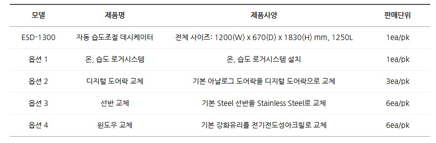 정전기 방지 및 습도 관리가 필요한 정밀 전자부품, 반도체, 실험기기 보관에 적합한 자동 습도조절 데시케이터 ESD-1300입니다.