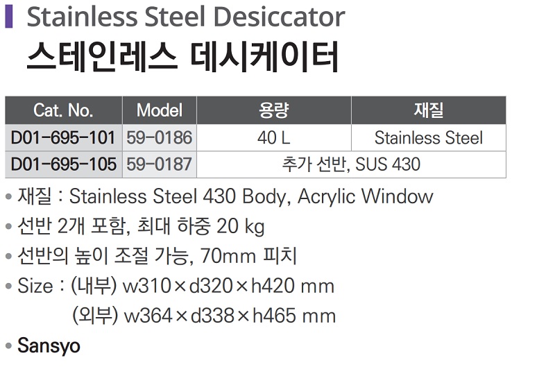 스테인레스 데시케이터 Stainless Steel Desiccator D01-695-101