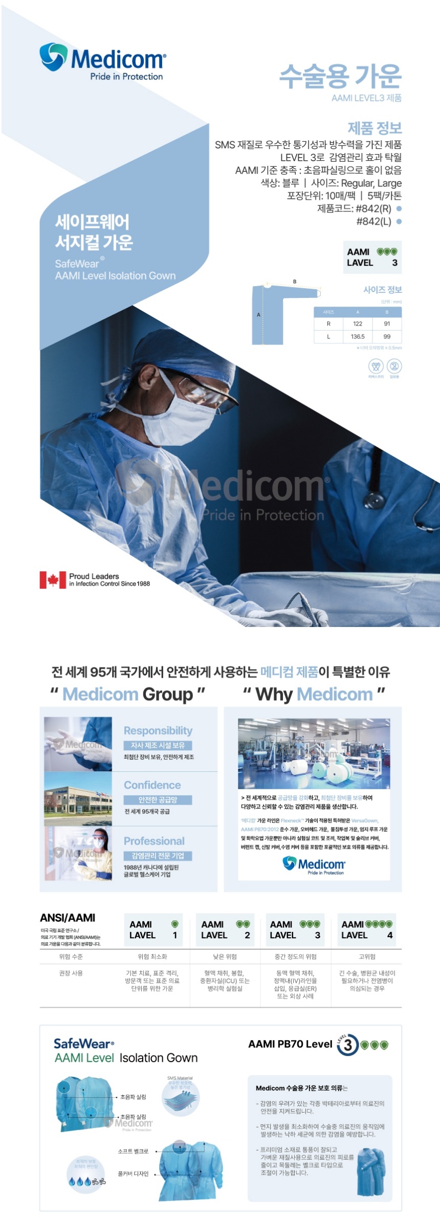 품명 SMS 재질로 우수한 통기성과 방수력을 가진 제품