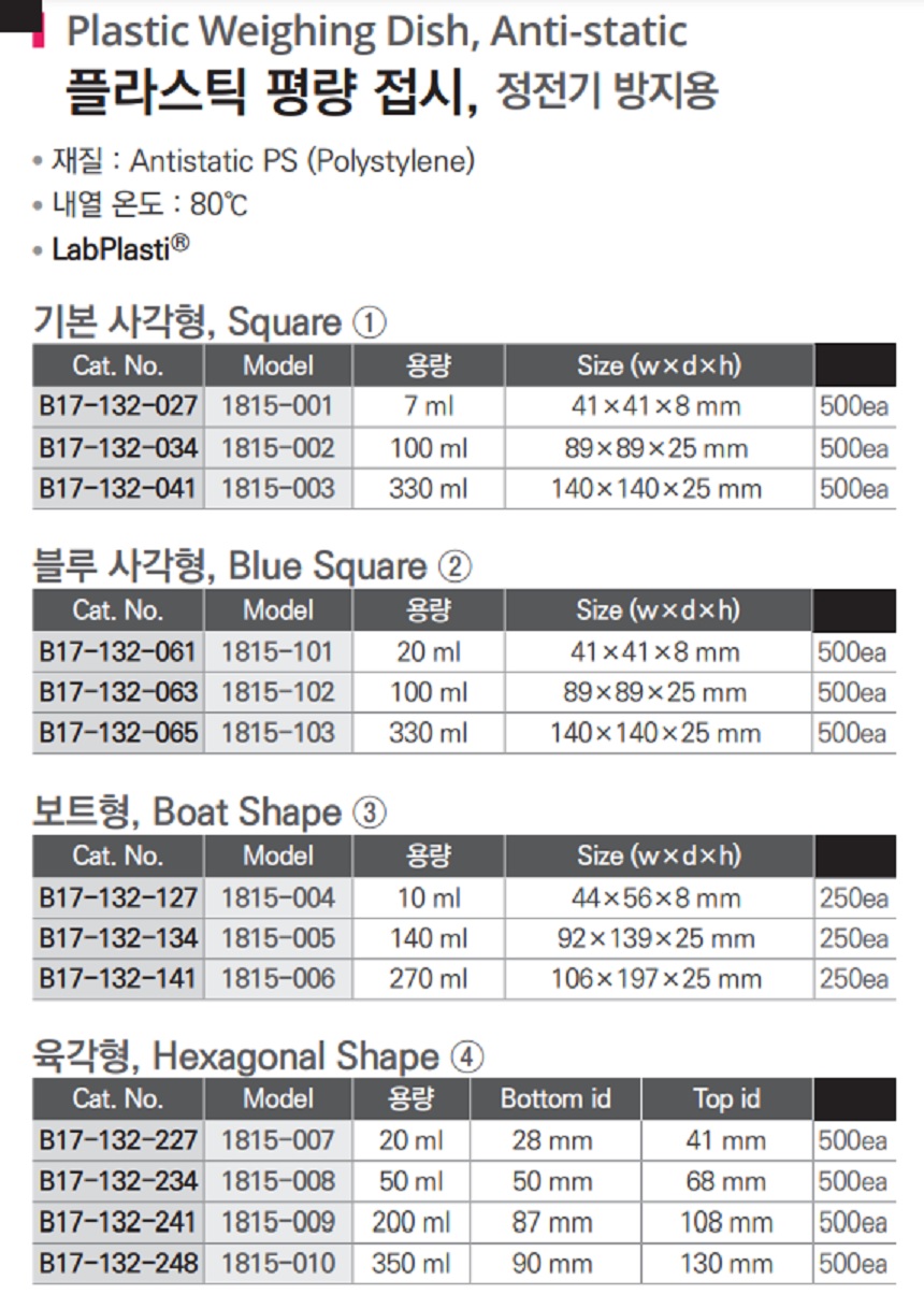 품명 ■ 재질 : Antistatic PS (Polystylene) ■ 내열 온도 : 80℃ ■ LabPlasti®