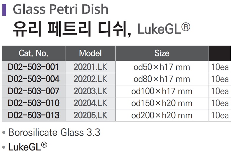 품명 ■ Borosilicate Glass 3.3 ■ LukeGL®