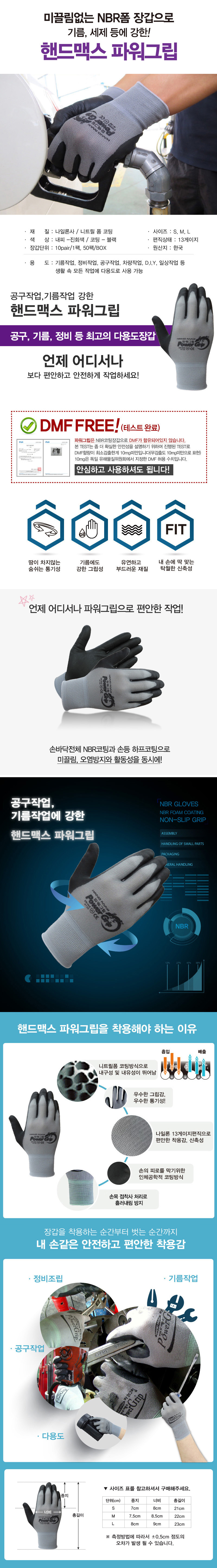 [핸드맥스] 파워그립 NO.701 NBR폼코팅장갑 기름장갑 10켤레