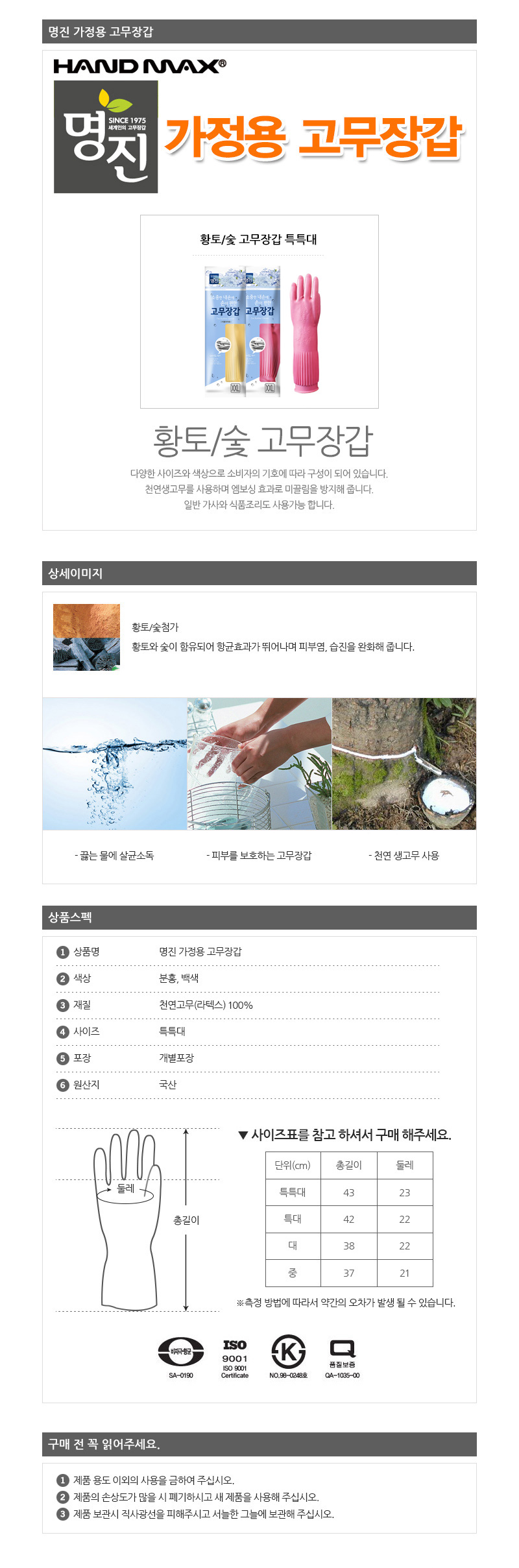 [명진]황토숯 특특대 가정용고무장갑 100켤레