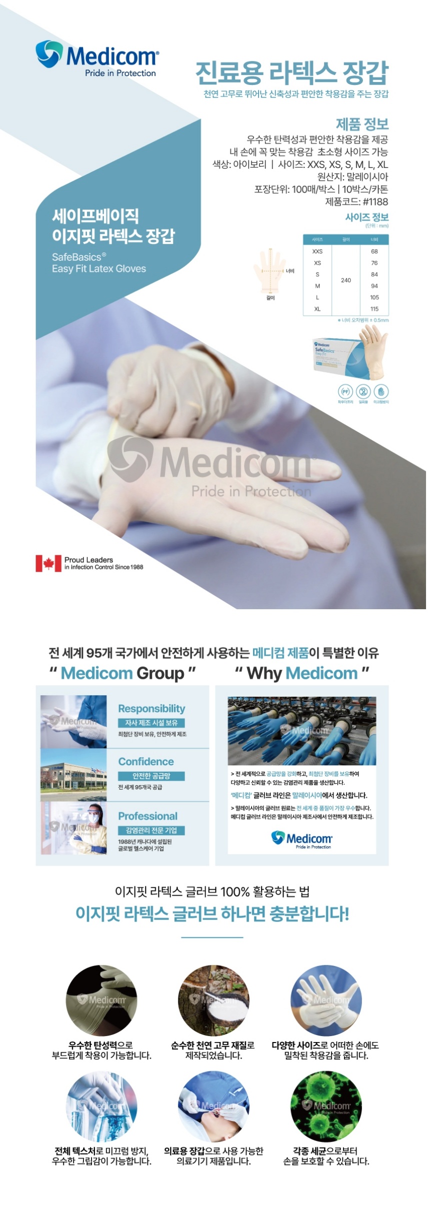 세이프베이직 1188 이지핏 라텍스장갑 10박스