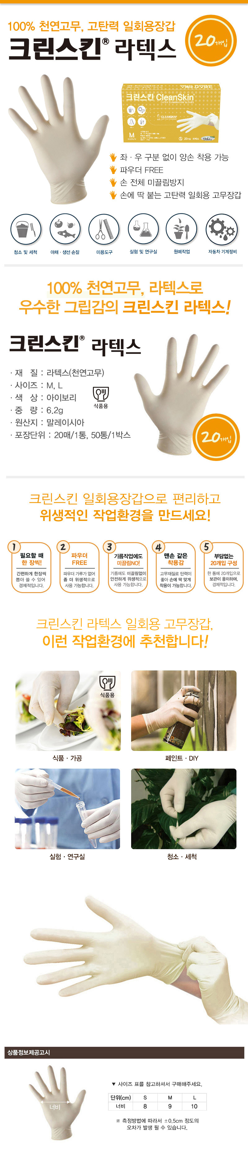 라텍스장갑 20개입 천연고무 6.2g 식품용 10통(20매입/통)