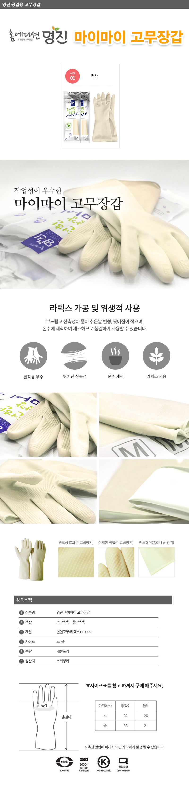 [명진]마이마이고무장갑 라텍스 백색 10켤레
