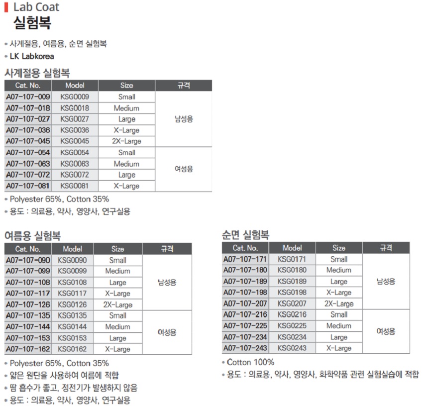 ■ 사계절용, 여름용, 순면 실험복