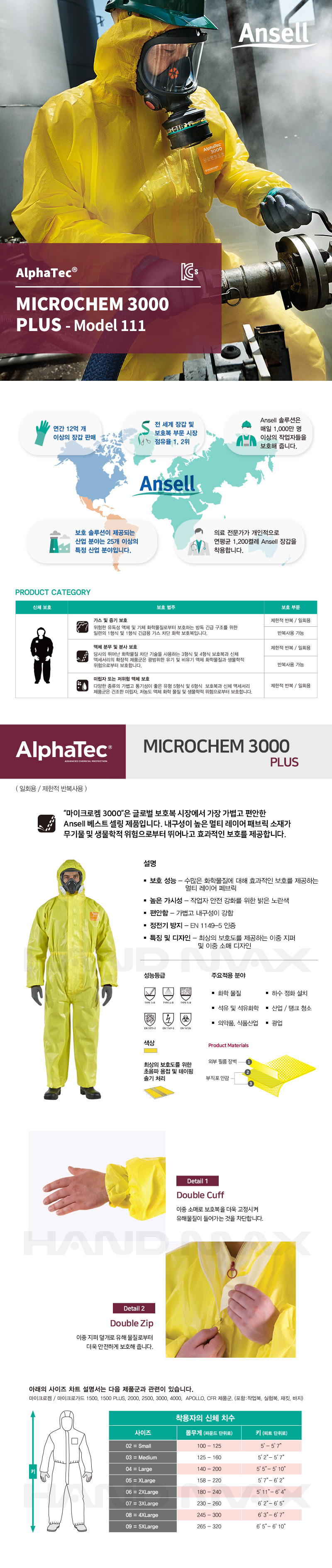 • [ANSELL] 알파텍 마이크로켐 MC3000 플러스 (화학복, 3,4,5형식,KCs인증) 1박스(25벌)