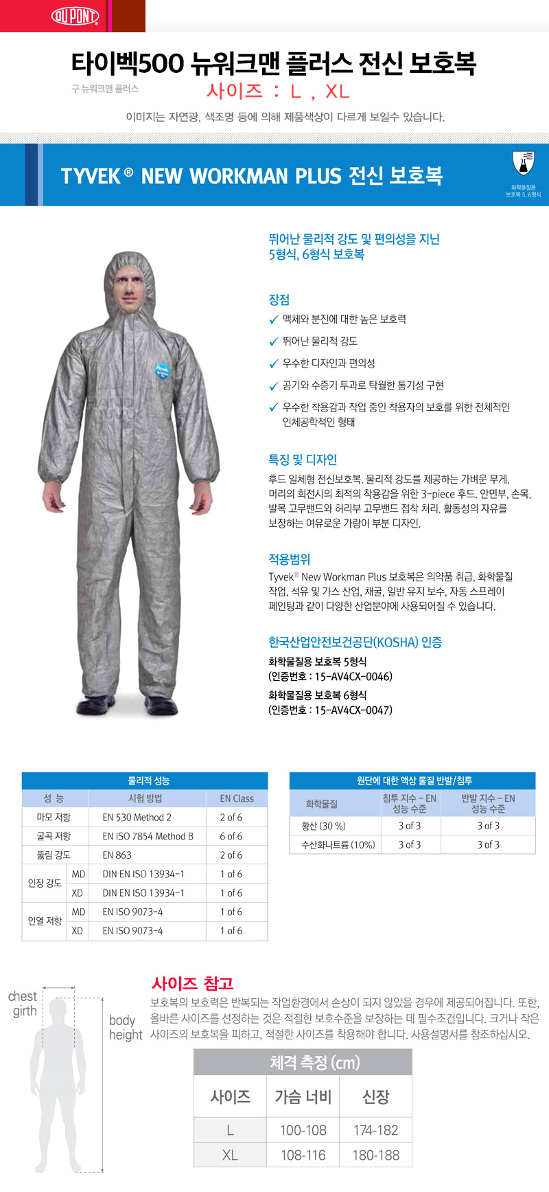 [듀폰] TYVEK 500 (구-뉴워크맨플러스) 화학복 50벌