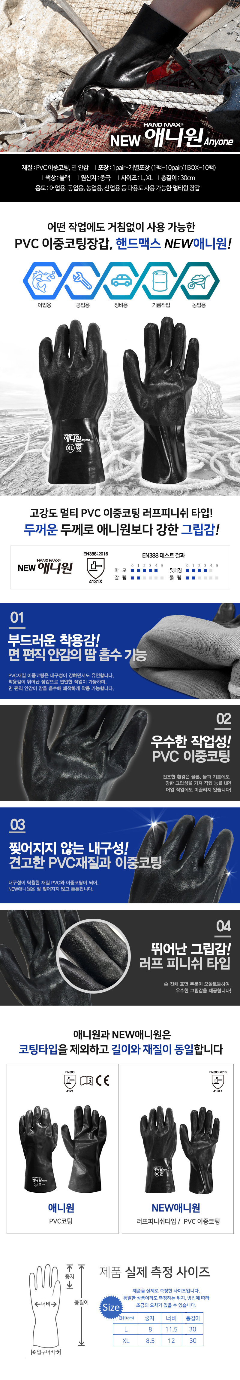 핸드맥스 (NEW)뉴애니원 NO.304 PVC 이중코팅장갑 어업/산업용 장갑