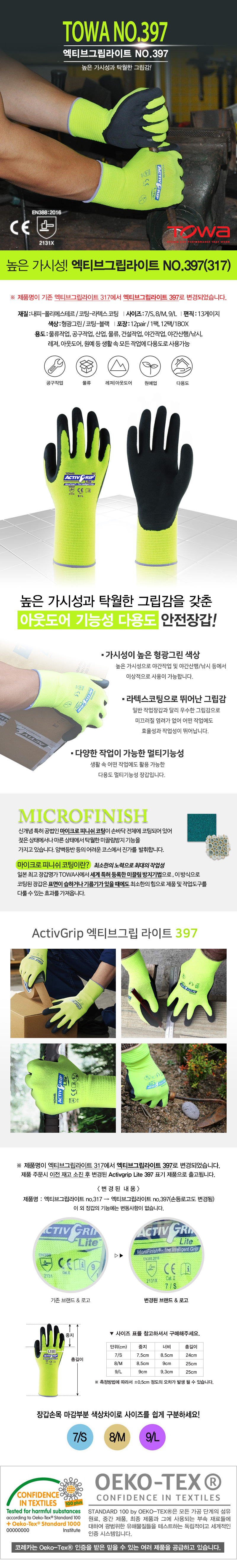 품명 ■ 일반 작업장갑과 달리 우수한 그립감으로 미끄러질 염려가 없어 어떤 작업에도 효율성과 작업성이 뛰어남