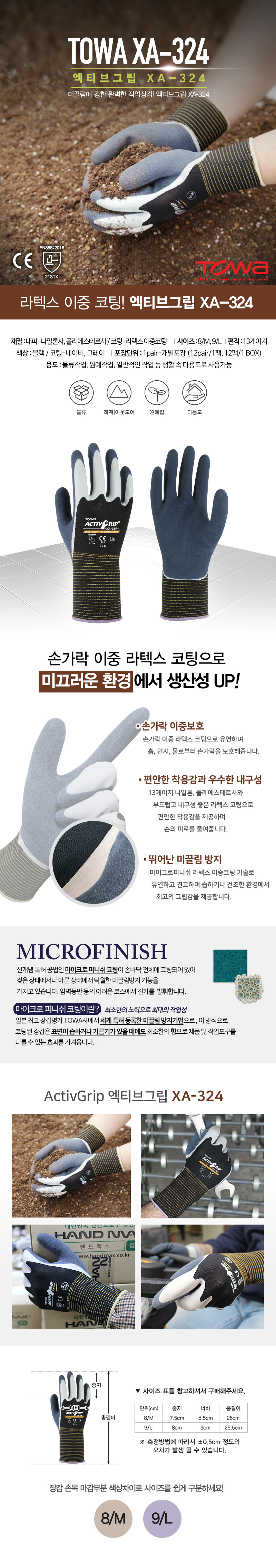 [토와] XA-324 라텍스 이중코팅장갑 손목긴형 작업장갑