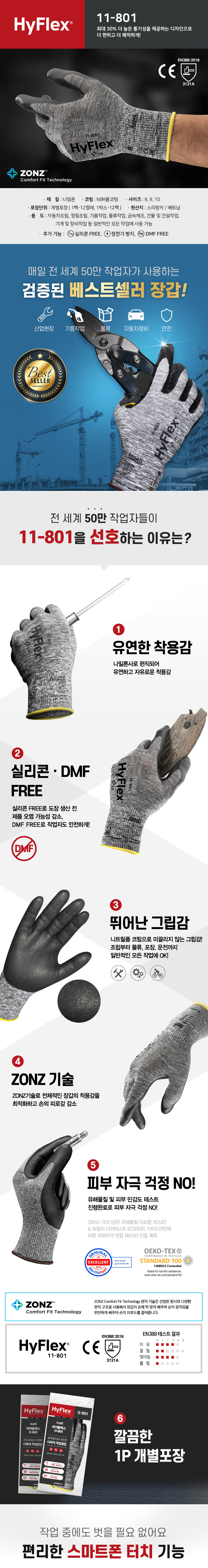 [안셀] 하이플렉스11-801 개별포장 나일론 NBR 코팅장갑 1팩(12켤레)