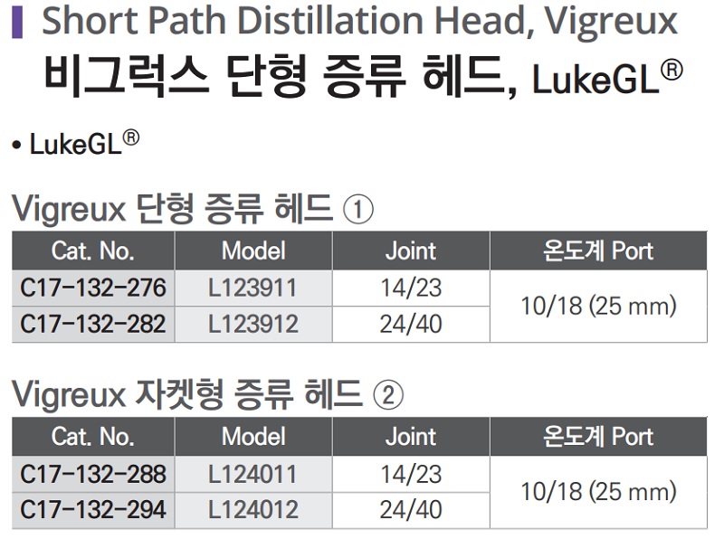 비그럭스 단형 증류 헤드, Short Path Distillation Head, Vigreux C17-132-276