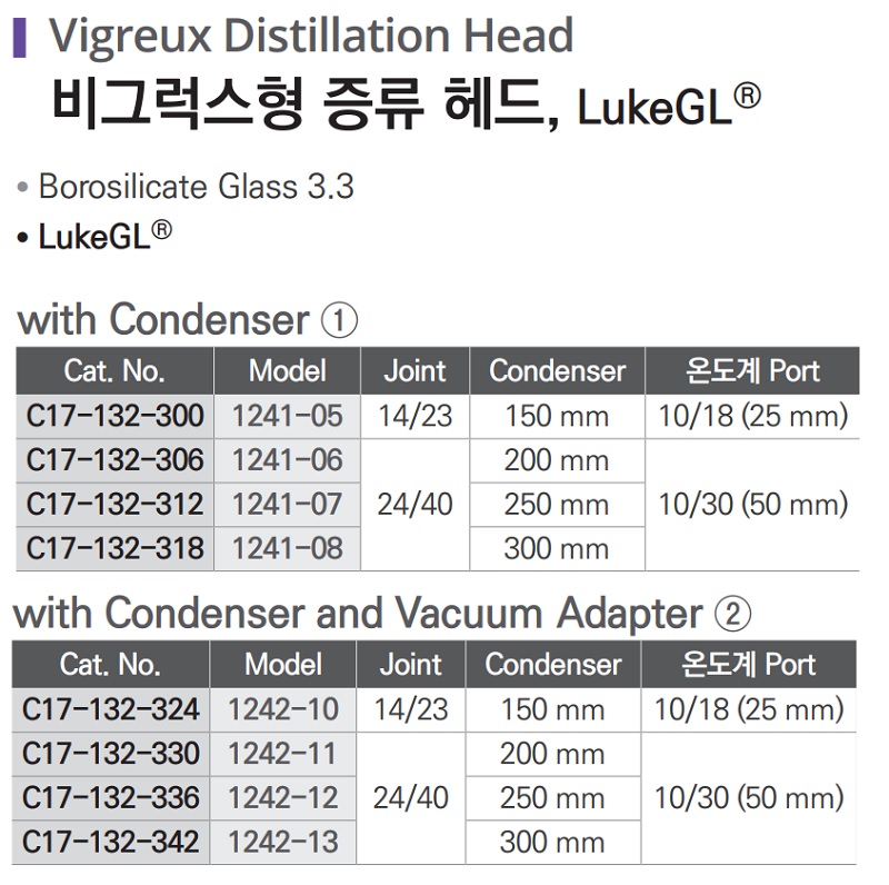 비그럭스형 증류 헤드, Vigreux Distillation Head C17-132-300