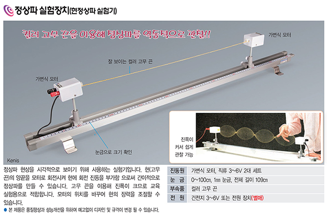 정상파 실험장치는 고무끈을 이용해 파동의 형성과 정상파 현상을 직접 관찰할 수 있는 교육용 장비입니다.