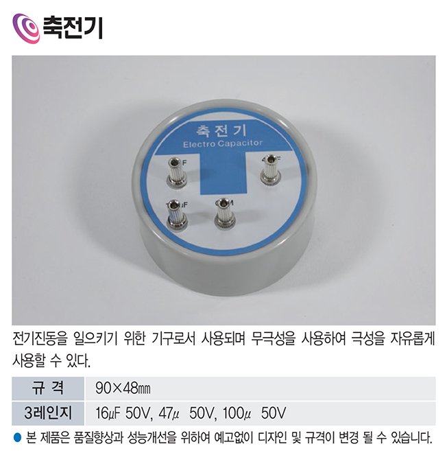 개요 : 전기진동을 일으키기 위한 기구로서 사용되며 무극성을 사용하여 극성을 자유롭게 사용할 수 있다.