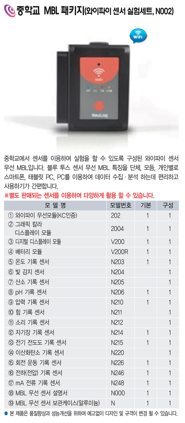 품명 : 중학교 MBL 패키지 와이파이 센서 실험세트(N002)