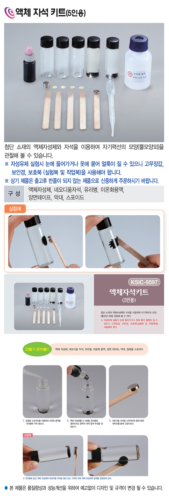 액체 자석 키트 5인용 실험교구 과학실험 VLS-9597
